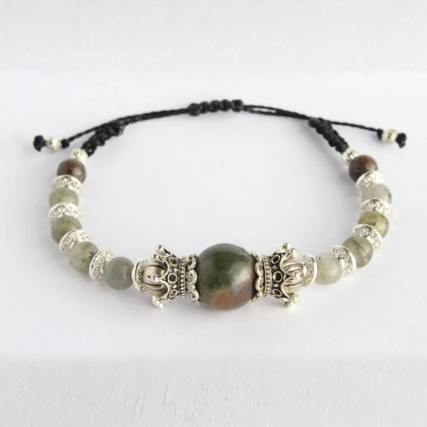 Pulsera de piedras naturales y zamak es una aleación de alta resistencia compuesta principalmente por zinc, junto con aluminio, magnesio y cobre. Destaca por se